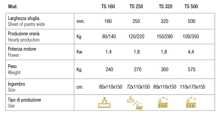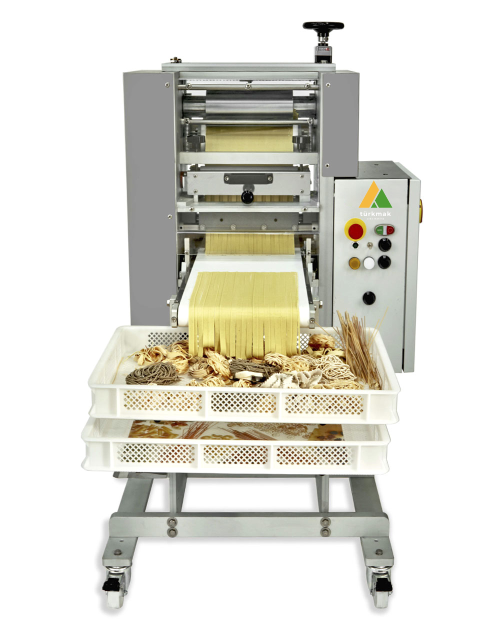 Uzun makarna (tagliatelle, tagliolini, pappardelle, melek kılı, spagetti alla chitarra, lazanya, fettuccine) üretimi için tabakanın kalibrasyonu ve otomatik kesilmesi için değiştirilebilir kalıplara sahip otomatik sac kesici. Teknik özellikler şunlardır: