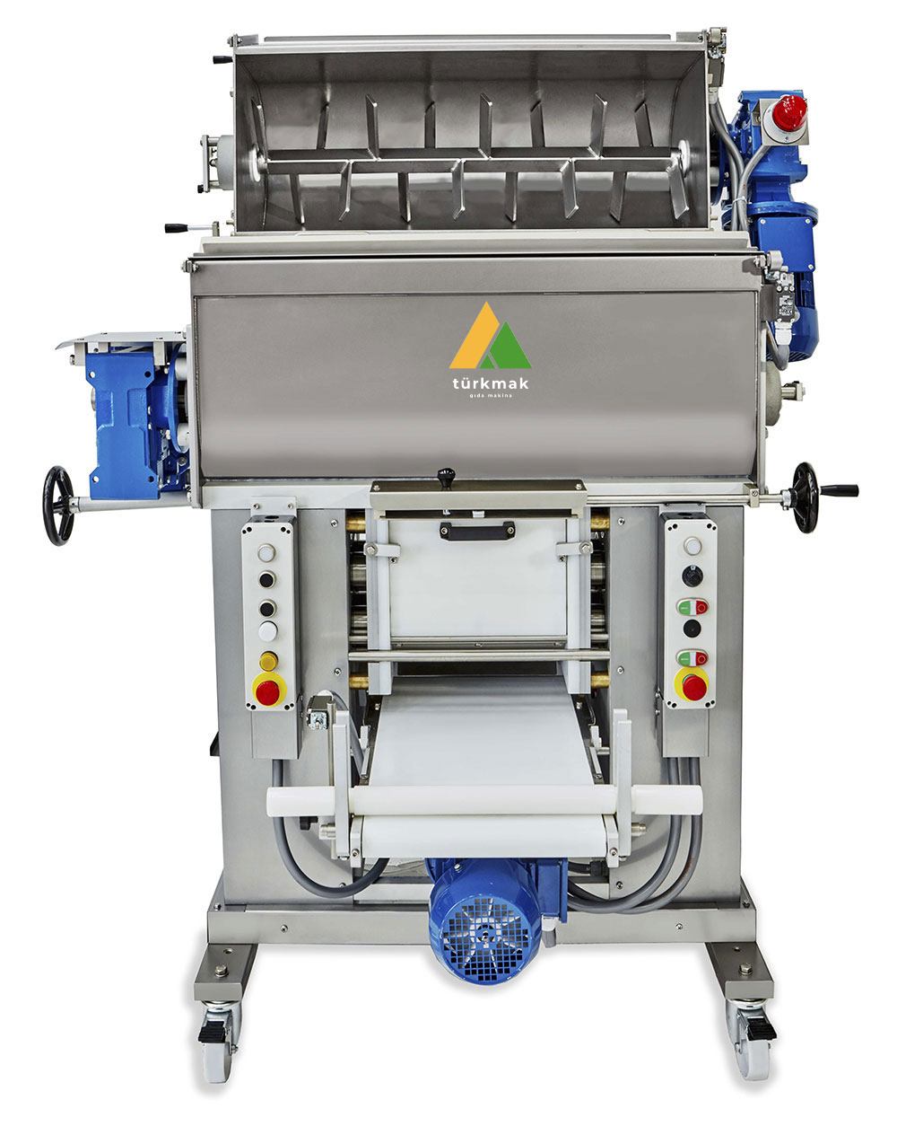 Her iki karıştırma tankının bıçak milinin çıkarılması olasılığı ile temizleme işlemleri kolaylaştırılmıştır. Birinci tanktaki ikinci tankın hamurunun devrilmesi motorlu olup, basit bir manevra ile polietilen muhafaza omuzları silindirlerden ayrılarak hamurla temas eden tüm parçaların derinlemesine temizlenmesini sağlar. Motorlu kayış, tabakanın otomatik olarak sarılmasını ve hamur rulosunun boyutunun ayarlanmasını sağlar. Basit bir manevra ile polietilen muhafaza omuzları silindirlerden ayrılarak hamurla temas eden tüm parçaların derinlemesine temizlenmesini sağlar. Motorlu kayış, kağıdı otomatik olarak sarmanıza ve hamur rulosunun boyutunu ayarlamanıza olanak tanır. Basit bir manevra ile polietilen muhafaza omuzları silindirlerden ayrılarak hamurla temas eden tüm parçaların derinlemesine temizlenmesini sağlar. Motorlu kayış, tabakanın otomatik olarak sarılmasını ve hamur rulosunun boyutunun ayarlanmasını sağlar.